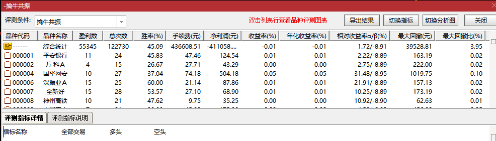 第四部分 指标评测 改了选股,测试一下,以持股5天平仓为条件,胜率为45.09%